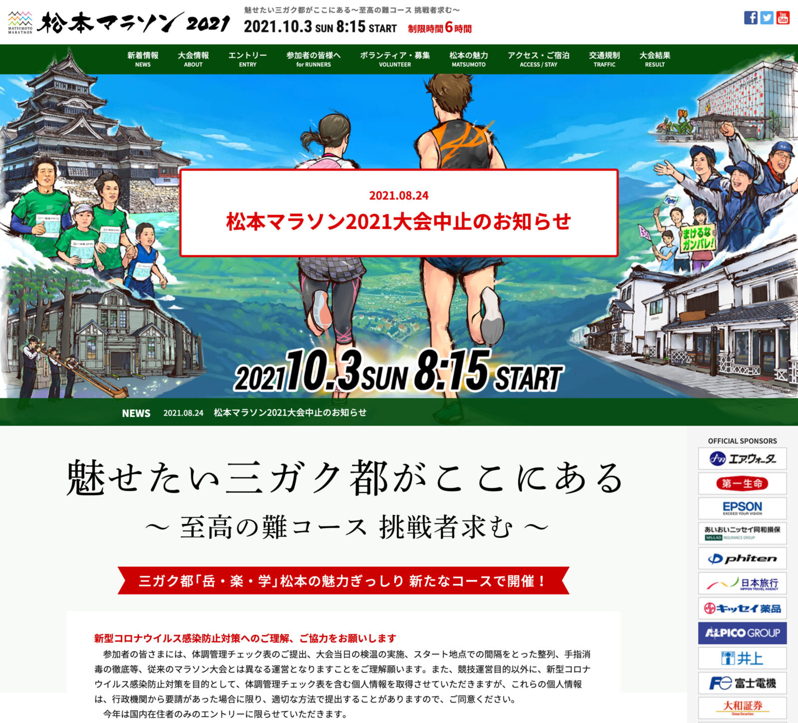 台風24号の影響で開催中止となった第2回松本マラソン。